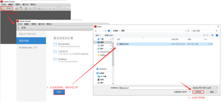 第三步、打开安装好的Adobe Reader,点击【打开】按钮选择PDF文件;