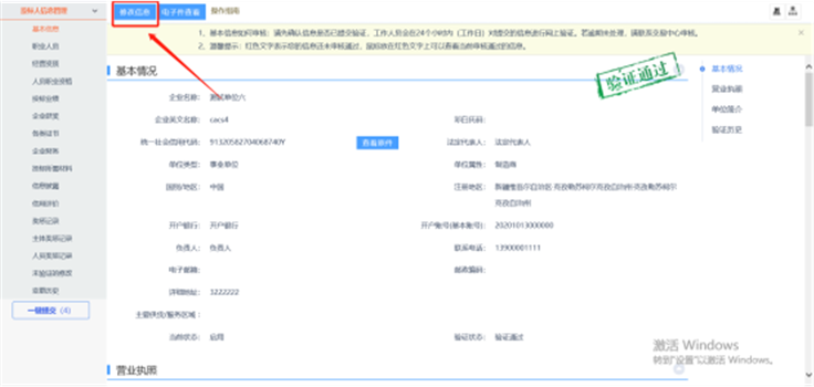 ② 若您单位的【基本信息】验证状态已经是【审核通过】的状态,您可以退出重新登录系统。