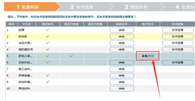 第二步、返回到【生成投标文件】界面,若对应模块后面显示【转换】按钮,则说明此模块中的所有电子签章都已删除;