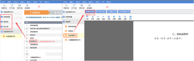 模式二:导入技术标文档后,各节点分别对应文档位置。